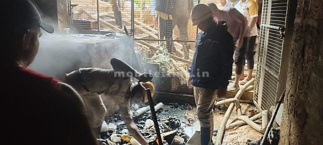 ಶನಿವಾರ ನಸುಕಿನಲ್ಲಿ ವಿದ್ಯುತ್ ಶಾರ್ಟ್ ಸರ್ಕ್ಯೂಟ್ ಕಾರಣದಿಂದ ಅವರ ಗೋದಾಮಿಗೆ ಅಗ್ನಿ ಸ್ಪರ್ಶವಾಯಿತು. ಅಲ್ಲಿ ಬೆಂಕಿ ಉರಿದ ಪರಿಣಾಮ ಗೋದಾಮಿನಲ್ಲಿದ್ದ 10 ಸಾವಿರ ಅಡಕೆ ಹಾಳೆಯ ಪ್ಲೇಟುಗಳು, 80 ಲೀಟರ್ ಜೇನುತುಪ್ಪ, ಲೋಟ-ಚಮಚ, ಅಗರಬತ್ತಿಗಳು ನಾಶವಾದವು. ಇದರೊಂದಿಗೆ 6 ಕ್ವಿಂಟಲ್ ಬಾಳೆಕಾಯಿ, 1 ಟನ್ ಬರಡು ತೆಂಗಿನ ಕಾಯಿಗಳು ಅಗ್ನಿಗೆ ಆಹುತಿಯಾದವು.
