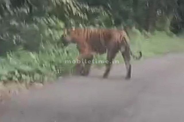 ಕಾರವಾರದ ಕೈಗಾ ಕಾಡಿನ ಬಳಿ ಅಂಕೋಲಾದ ಕರಿಕಲ್ ನಾರಾಯಣ ಹೆಗಡೆ ಅವರಿಗೆ ಪಟ್ಟೆ ಹುಲಿ ಕಾಣಿಸಿದೆ. ಹುಲಿ ಓಡಾಟದ ವಿಡಿಯೋ ಮಾಡಿದ ಅವರು ಅದನ್ನು ತಮ್ಮ ಬಳಗದಲ್ಲಿ ಹಂಚಿದ್ದಾರೆ.