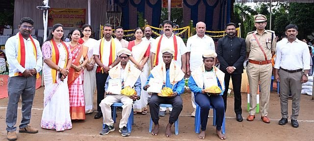 ಜಿಲ್ಲಾಧಿಕಾರಿ ಕಚೇರಿಯ ಆವರಣದಲ್ಲಿ ಭುವನೇಶ್ವರಿ ದೇವಿಯ ಭಾವಚಿತ್ರಕ್ಕೆ ಪೂಜೆ ಸಲ್ಲಿಸಿದ ಜಿಲ್ಲಾಧಿಕಾರಿ ಕೆ ಲಕ್ಷ್ಮೀಪ್ರಿಯಾ ಸ್ತಬ್ಧ ಚಿತ್ರ ಮೆರವಣಿಗೆಗೆ ಚಾಲನೆ ನೀಡಿದರು. ವಿಧಾನ ಪರಿಷತ್ ಸದಸ್ಯ ಗಣಪತಿ ಉಳ್ವೇಕರ್, ನಗರಸಭೆ ಅಧ್ಯಕ್ಷ ರವಿರಾಜ ಅಂಕೋಲೆಕರ್, ಜಿಲ್ಲಾ ಪೊಲೀಸ್ ವರಿಷ್ಠಾಧಿಕಾರಿ ದೀಪನ್ ಎಂ ಎನ್, ಜಿಲ್ಲಾ ಪಂಚಾಯತ ಮುಖ್ಯ ಕಾರ್ಯನಿರ್ವಾಹಕ ಅಧಿಕಾರಿ ದಿಲೀಷ್ ಶಸಿ, ಅಪರ ಜಿಲ್ಲಾ ಅಧಿಕಾರಿ ಸಾಜಿದ್ ಮುಲ್ಲಾ, ತರಬೇತಿ ನಿರತ ಐಎಎಸ್ ಅಧಿಕಾರಿ ಝೂಪೀಶನ್ ಹಕ್ ಮತ್ತಿತರರು ಉಪಸ್ಥಿತರಿದ್ದರು. ಸಾಧಕರಿಗೆ ಸನ್ಮಾನ, ಅಗತ್ಯವಿದ್ದವರಿಗೆ ಪೌಷ್ಠಿಕ ಆಹಾರ ನೀಡಲಾಯಿತು. ಪೊಲೀಸ್, ಅರಣ್ಯ, ಗೃಹ ರಕ್ಷಕ ದಳ, ಎನ್.ಸಿ.ಸಿ, ಸ್ಕೌಟ್ಸ್ ಅಂಡ್ ಗೈಡ್ಸ್, ಸೇವಾದಳ ತಂಡಗಳಿoದ ಆಕರ್ಷಕ ಪಥ ಸಂಚಲನ ನಡೆಯಿತು. ಹಾಗೂ ಶಾಲಾ ವಿದ್ಯಾರ್ಥಿಗಳಿಂದ ನಾಡಿನ ಕಲೆ ಸಾಹಿತ್ಯ ಸಂಸ್ಕೃತಿ ಬಿಂಬಿಸುವ ಸಾಂಸ್ಕೃತಿಕ ಕಾರ್ಯಕ್ರಮಗಳು ನಡೆದವು.