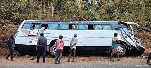 ಮೈಸೂರಿನಿಂದ ದಾಂಡೇಲಿಗೆ ಹೊರಟಿದ್ದ ಬಸ್ಸು ಯಲ್ಲಾಪುರದಲ್ಲಿ ಅಪಘಾತಕ್ಕೀಡಾಗಿದೆ. ಮಂಚಿಕೇರಿ ಸಮೀಪದ ಚವತ್ತಿ-ಉಮ್ಮಚ್ಗಿ ನಡುವಿನ ಗೋರ್ಸಗದ್ದೆ ಬಳಿ ಈ ಬಸ್ಸು ರಸ್ತೆ ಪಕ್ಕದ ಧರೆಗೆ ಗುದ್ದಿದೆ.