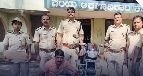 ದಾಂಡೇಲಿ ಕೆರವಾಡದ ರಾಜು ಮಂಜು ಪೋತದಾರ ವನ್ಯಜೀವಿ ಹತ್ಯೆ ಪ್ರಕರಣದಲ್ಲಿ ಬಂಧಿಯಾಗಿದ್ದಾರೆ. ಪ್ರಾಣಿ ಕೊಂದ ರಾಜು ಪೋತದಾರ್ ಅದರ ಮಾಂಸವನ್ನು ಬೈಕಿನಲ್ಲಿ ಸಾಗಿಸುತ್ತಿದ್ದಾಗ ಅರಣ್ಯಾಧಿಕಾರಿಗಳು ಹಿಡಿದಿದ್ದಾರೆ. ಬರ್ಚಿ ರಸ್ತೆಯಲ್ಲಿ ತಪಾಸಣೆ ವೇಳೆ ಆರೋಪಿ ಸಿಕ್ಕಿಬಿದ್ದಿದ್ದು, ಬೈಕನ್ನು ಅಧಿಕಾರಿಗಳು ಜಪ್ತು ಮಾಡಿದ್ದಾರೆ.