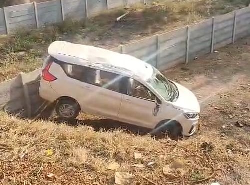 ಯಲ್ಲಾಪುರದ ಜಿಯೋ ಕಚೇರಿ ಬಳಿ ಕಾರೊಂದು ಹೊಂಡಕ್ಕೆ ಹಾರಿದೆ. ಹೆದ್ದಾರಿಯವರು ಅಳವಡಿಸಿದ್ದ ಸೂಚನಾ ಫಲಕ್ಕೆ ಗುದ್ದಿದ ಕಾರು ಪಕ್ಕದಲ್ಲಿದ್ದ ಕಂದಕಕ್ಕೆ ಬಿದ್ದಿದೆ.