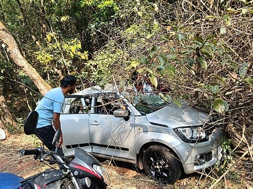 ಹಳೆಯ ಗೋವಾದಲ್ಲಿ ವಾಸಿಸುತ್ತಿದ್ದ ದತ್ತಪ್ರಸಾದ್ ಹರಿದಾಸ್ ಹಾಗೂ ಜಾಗೃತಿ ಹರಿದಾಸ ಅವರು ಈ ಮಾರ್ಗದಲ್ಲಿ ಸಂಚರಿಸುತ್ತಿದ್ದರು. ಅವರು ಹೊರಟಿದ್ದ ಕಾರು ಮರಕ್ಕೆ ಗುದ್ದಿದ್ದು, ಗುದ್ದಿದ ರಭಸಕ್ಕೆ ಜಾಗೃತಿ ಹರಿದಾಸ ಅವರು ಅಲ್ಲಿಯೇ ಸಾವನಪ್ಪಿದರು. ಈ ದಂಪತಿ ಸಂಬAಧಿಕರ ವಿವಾಹ ಸಮಾರಂಭದಲ್ಲಿ ಭಾಗವಹಿಸಲು ಖಾನಾಪುರಕ್ಕೆ ಆಗಮಿಸಿದ್ದರು. ಕಾರ್ಯಕ್ರಮ ಮುಗಿಸಿ ಕಾರಿನಲ್ಲಿ ಮರಳುವಾಗ ಅವಘಡ ನಡೆದಿದೆ.