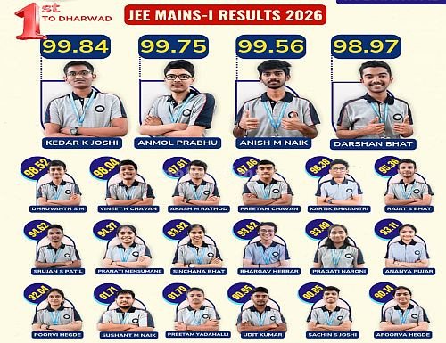 ರಾಷ್ಟ್ರೀಯ ಪರೀಕ್ಷಾ ಸಂಸ್ಥೆ ನಡೆಸುವ ಜೆ ಇ ಇ ಮುಖ್ಯ ಪರೀಕ್ಷೆಯ ಪ್ರಥಮ ಆವೃತ್ತಿಯಲ್ಲಿ ಧಾರವಾಡದ ಅರ್ಜುನ ಸಂಸ್ಥೆಯ ವಿದ್ಯಾರ್ಥಿಗಳು ಅತ್ಯುತ್ತಮ ಸಾಧನೆ ಮಾಡಿದ್ದಾರೆ.