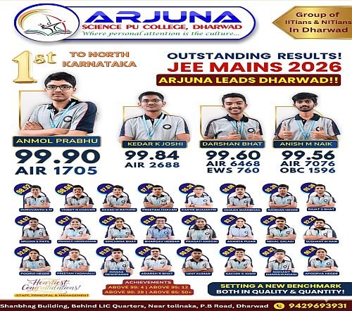 ಉತ್ತರ ಕನ್ನಡ ಜಿಲ್ಲೆಯ ಅನೇಕರ ಭವಿಷ್ಯ ರೂಪಿಸಿದ ಧಾರವಾಡದ ಅರ್ಜುನ ಕಾಲೇಜು JEE ಪರೀಕ್ಷೆಯಲ್ಲಿ ಉತ್ತರ ಕರ್ನಾಟಕಕ್ಕೆ ಪ್ರಥಮ ಸ್ಥಾನಪಡೆದಿದೆ.